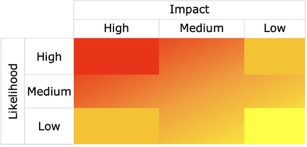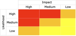 The first problem of a nine-box shows up as soon as it gets used for prioritization: is a High/Medium risk more important to address than a Medium/High risk, or not? You can waste hours arguing about how to prioritize Low/High against High/Low, and what about Medium/Medium?